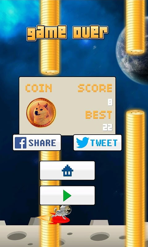 火箭公爵(Rocket Doge)是一款休闲游戏,玩法类似《笨鸟先飞 Flappy Bird》,但是在画面上却有很大的改进。玩家只需通过点击屏幕操纵一个穿着宇航服的公爵不断避开用巨大金币堆起来的障碍物即可。如果公爵碰到这些障碍的话,游戏就立即结束了。这类游戏近期非常的火,本款游戏应该算是当中的佼佼者,大家可以来试玩哟!
