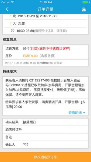 手机上可进行接受、拒绝、修改预订号等各类操作;