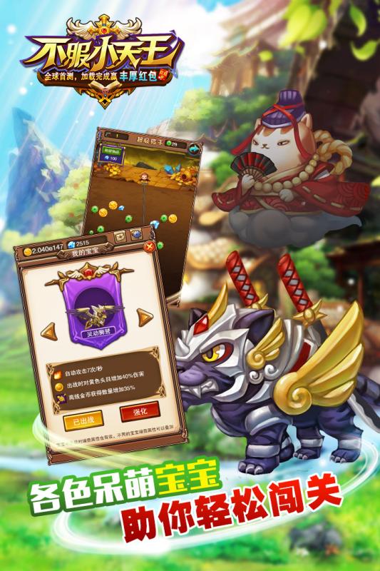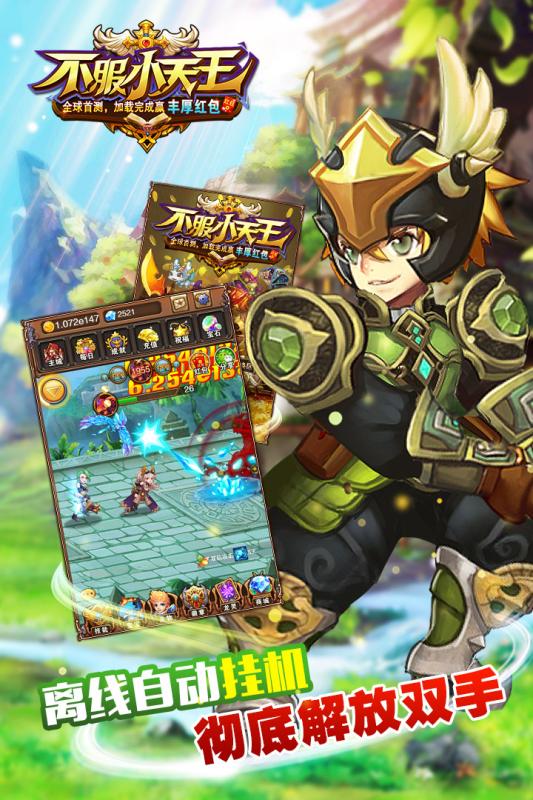 《不服小天王》最新一代的放置类挂机冒险游戏,精美的游戏画面、新颖有趣的玩法、超乎想像的简单操作,感受即好玩又轻松的全新挂机体验。带宝宝、战轮回、闯兽潮、夺圣物、爬天梯,疯狂点击就能爆发出超强战力,24小时不间断升级轻松超神!