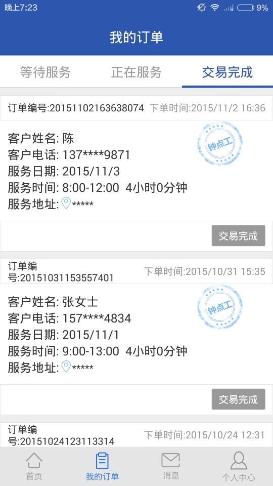 洁家优家政服务人员专用APP.服务人员可以通过它的功能直接接到客户的服务订单。使用者可以在APP中查看订单详情,并且可以直接打电话给客户;还能直接提取服务费用。
