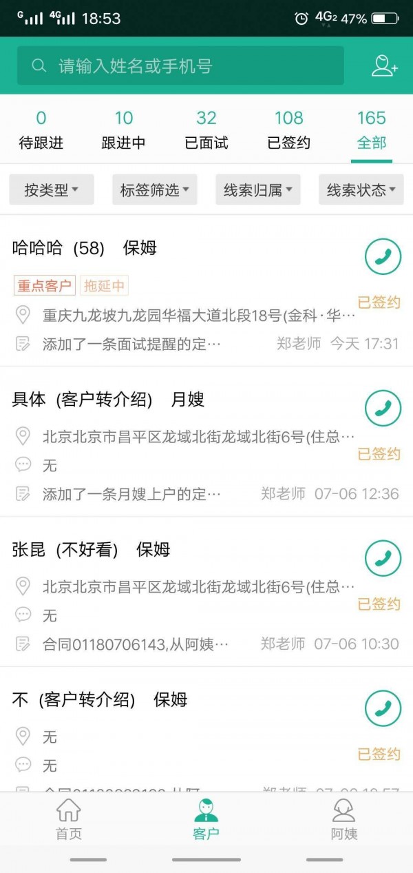 “轻松管理阿姨,类型、籍贯、经验…,一键筛选匹配到最合适的阿姨”