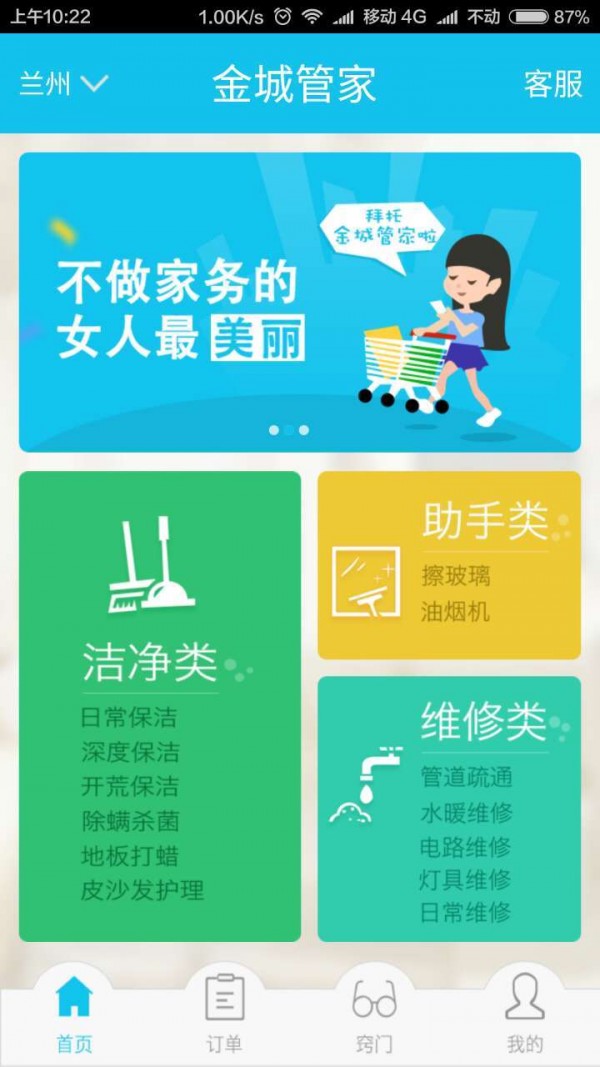 金城管家app是一款到家服务类软件,由甘肃小马快跑网络科技有限公司出品,金城管家app为广大用户提供各种日常家庭服务随时随地预约,享受优质上门服务,让生活更美好!