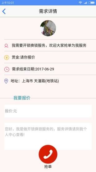 一键发布生活需求,系统瞬间推送给周边服务者,大家抢单做服务,开锁、维修、搬家、送药上门等1000余种平时很少需要,而一旦需要却又急得要命!