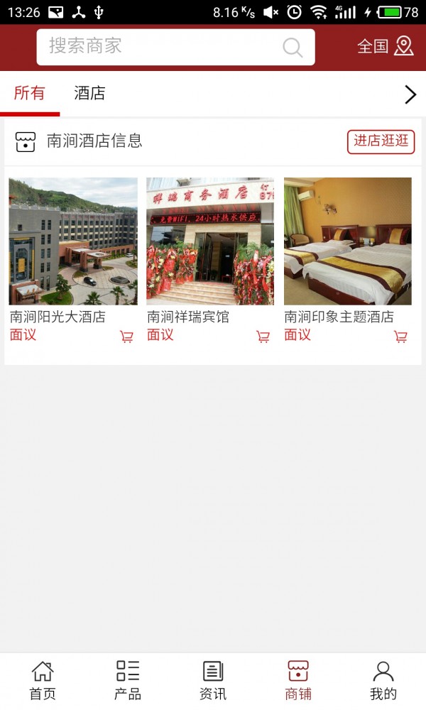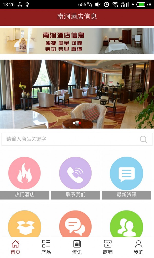 南涧酒店信息App不仅具备购物、查询订单、搜索商品、行业资讯和产品评价等常用功能,而且还实现了手机版特有的会员注册陆、广告位、招商开店等功能。目标是整合当地品牌商、生产商、经销商,为商家和消费者之间提供一站式解决方案。