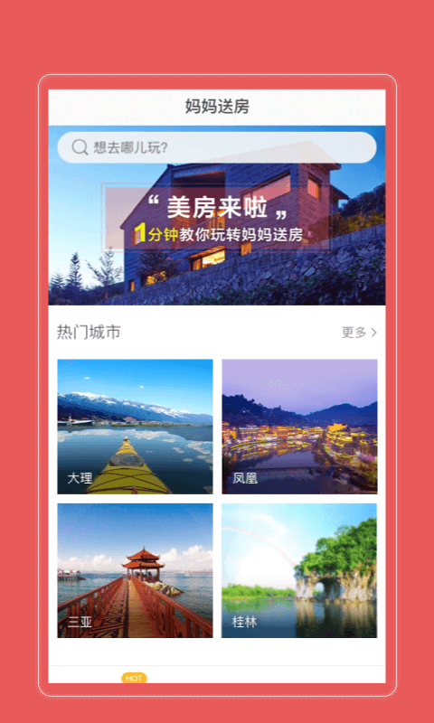 妈妈送房app是一款旅行服务应用,妈妈送房app为用户提供一个便捷的民宿租房平台,让用户可以通过软件享受超实惠便捷的旅行居住生活。