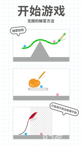 自由划线可以让球滚动,你的想象力是过关的关键。