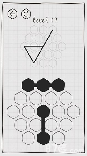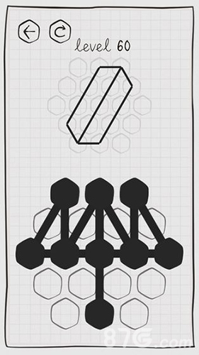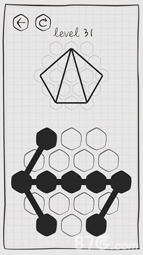 谜走点线安卓是一款休闲烧脑挑战类游戏,该游戏整体来说是比较烧脑的,简洁的游戏画面中暗藏了重重难关,玩家需要在一个六边形方框中将绳子摆放为指定要求才能过关!游戏中会给出一个目标的图形,但是玩家需要利用有限的线条和中几何图形组合出来得到最终的效果,需要玩家们拥有很强的逻辑思维能力和空间想象力,赶快去下载吧!