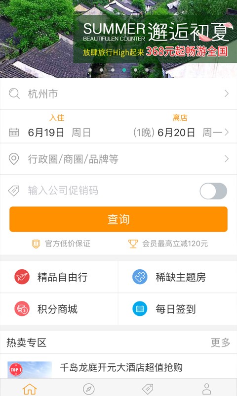 6.在发现模块定期推出新开业酒店,优惠活动和热门城市等信息。