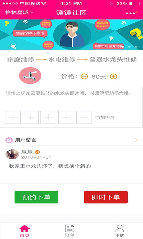 4.您通过镁镁社区下单后,就会有我们的服务人员快速为您服务,为您带来高效、低价、满意的服务!