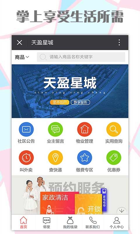 天盈星城app是一款社区生活服务平台,为用户提供各种生活服务,满足用户日常所需,还能一键留言及时反馈个人建议。