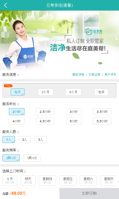 庭美帮app是全国家庭生活服务领域订购平台,提供家庭保洁、家居保养、家电清洗、干洗服务、保姆月嫂等专业的家庭服务。