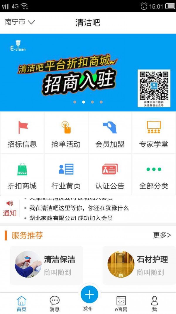 清洁吧app是为清洁服务企业提供行业资质的互联网应用,“清洁吧”着重为服务企业增加业务、降低成本、如何提高市场竞争能力为主导思想,帮助服务企业,助力服务企业,团结服务企业,共同规范行业市场,生态健康发展清洁行业。