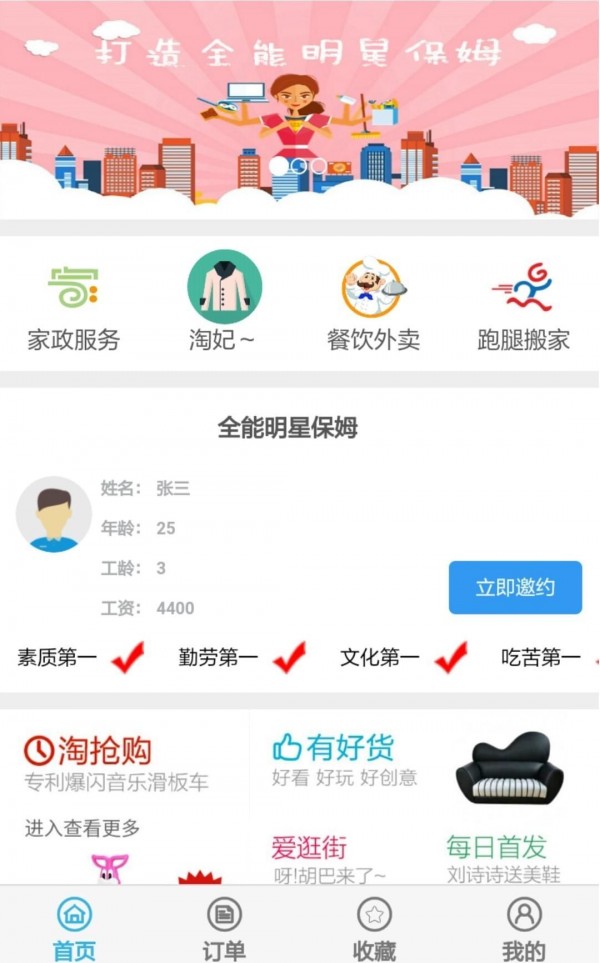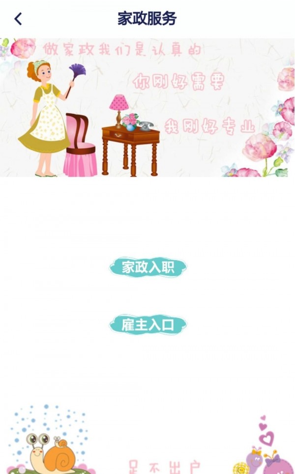 一、家政服务:主要针对一些需要保姆的雇主在APP上找自己满意的保姆,公司有专业的家政人员;