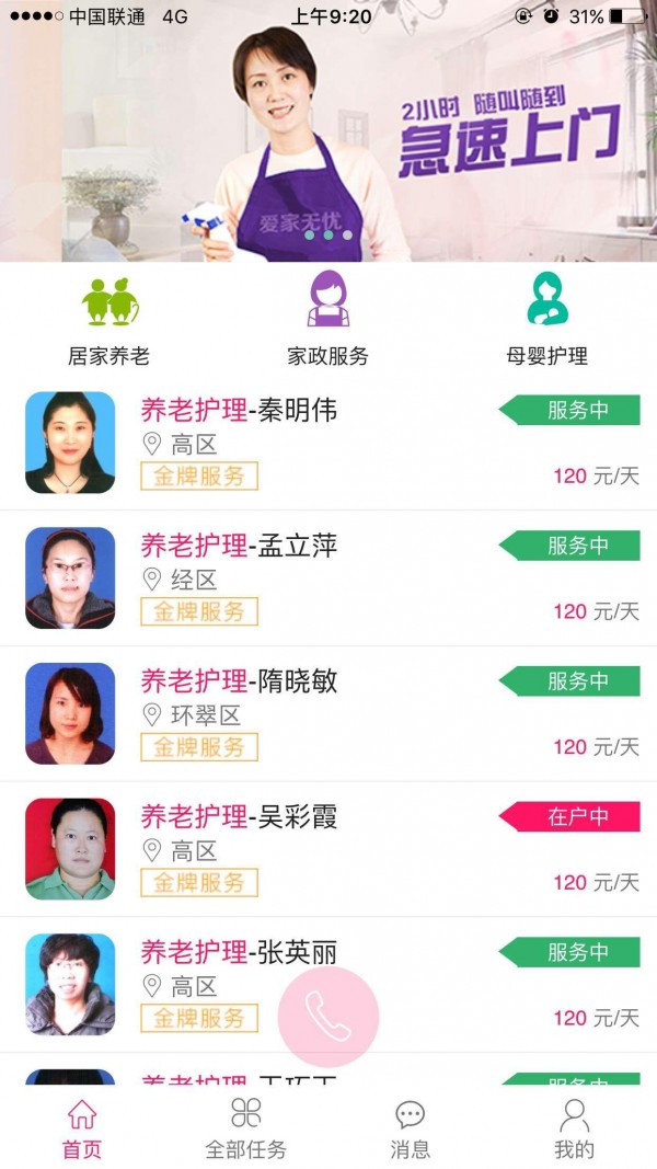 大姐爱家app是一款生活服务应用,是个专业的家政服务平台。通过大姐爱家app你可查阅阿姨信息,在线预约家政服务等。