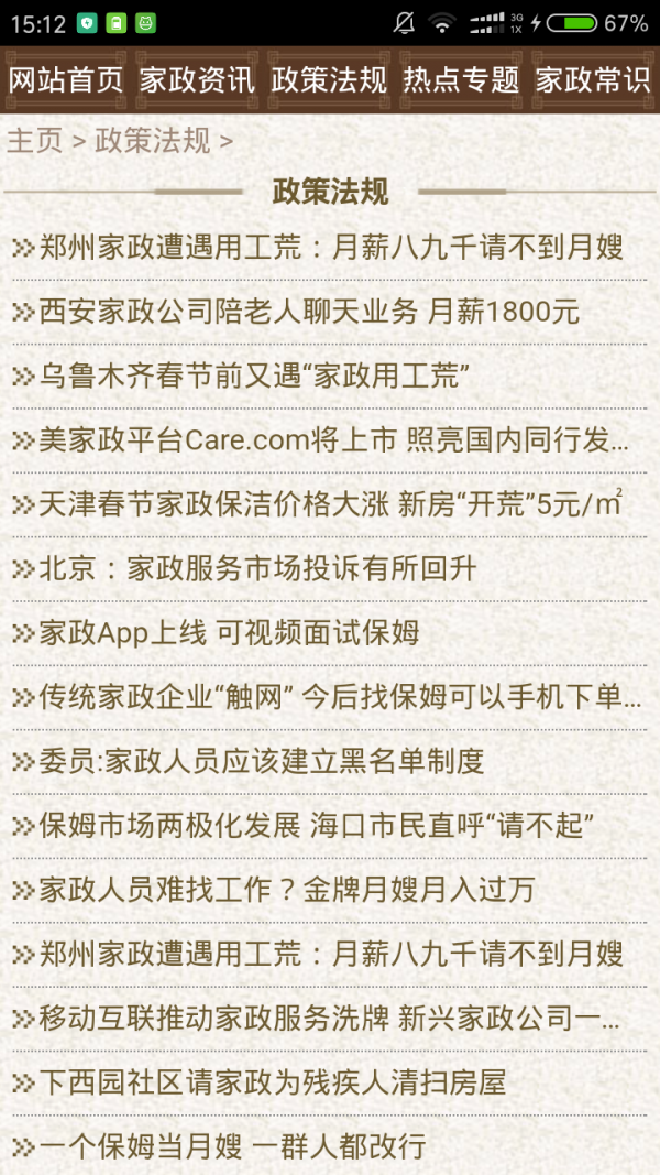 此应用将介绍家政国标,发布清扫清洁注意事项,家具、地板、日用品等的保养、保洁知识,家政服务中从事清扫清洁的操作规范,让您了解业界趋势,家政服务供需信息,家政行业新闻等。