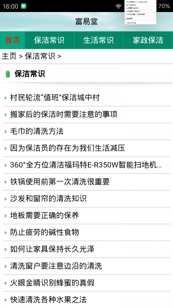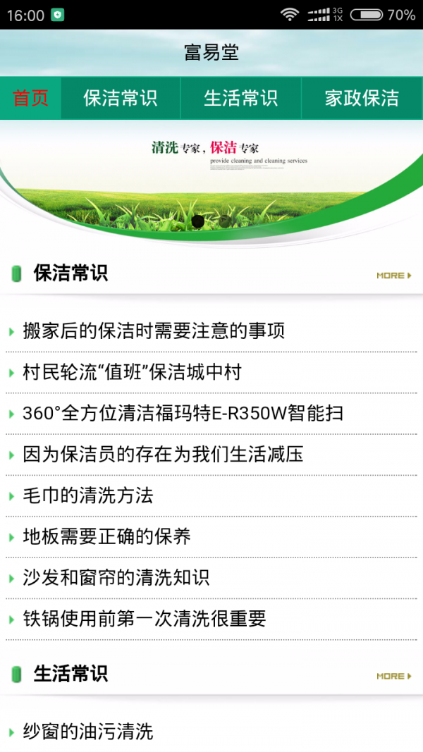 富易堂app是一款生活服务应用,是个综合信息服务平台。通过富易堂app你可查阅清扫清洁注意事项美利坚妻保洁知识等。