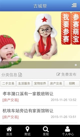 吉城帮是一款服务于安吉人的手机APP。我们主打的便民信息发布,二手交易,家政家装,求职招聘,宠物领养,同城活动等全面本地吃住行服务。