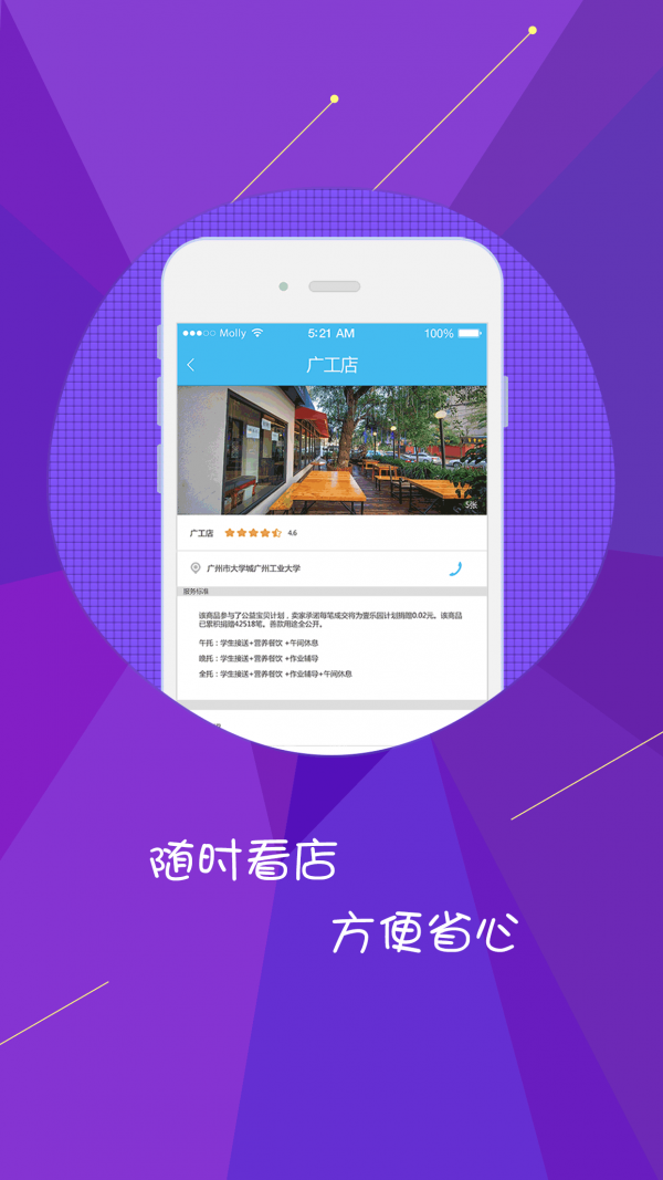 五六点app是一款基于地理定位的提供专业托管服务的app,用户可以在上面找到离自己住处最近的托管服务。线上支付,省去线下支付的麻烦,用户可以随时查看自己孩子的的动态信息,家长也可以随时和店内老师进行交流。家长在app上可以获得自己孩子每一天的成长动态,方便记录孩子的成长轨迹