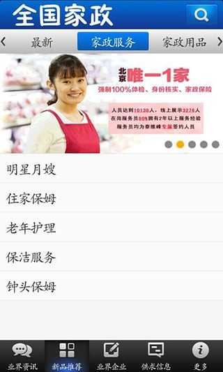 全国家政app是一个利用互联网技术为载体的家政服务平台,全国家政app通过信息采集和资讯过滤为手段,向广大消费者提供一个较为完整、真实可靠、服务规范的各类家政服务资源,欢迎下载体验。
