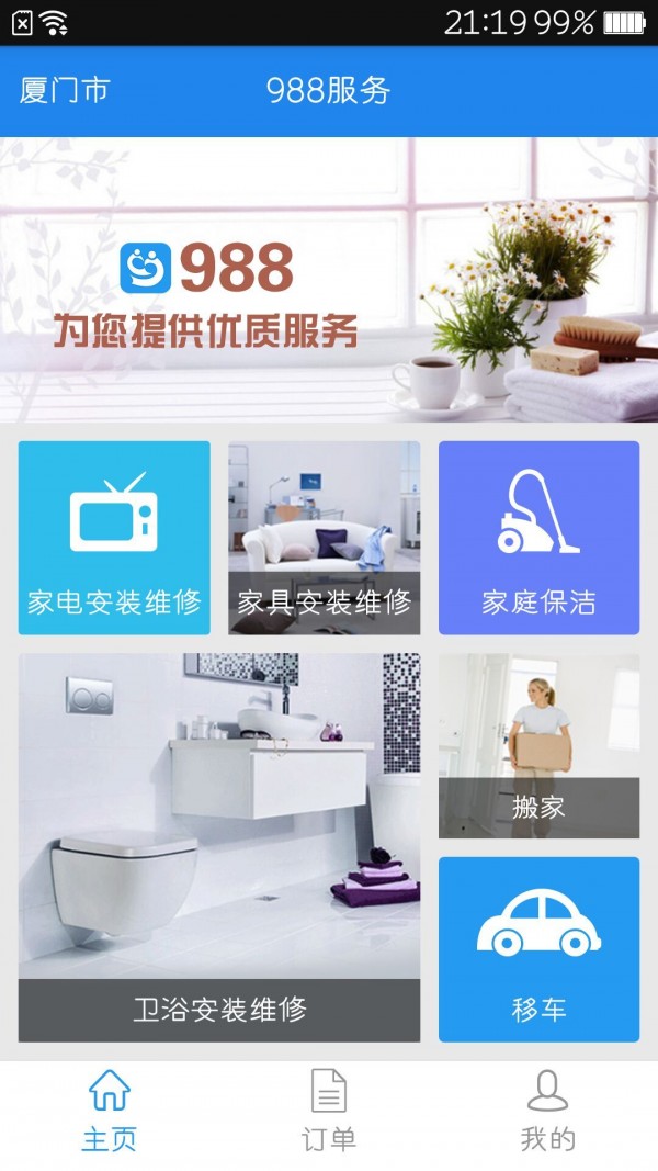 988服务app由厦门天都月网络科技有限公司研发,提供卫浴安装维修,家电安装维修,家具安装维修,搬家,家庭保洁,移车等生活服务。988服务为广大用户提供优质的服务。