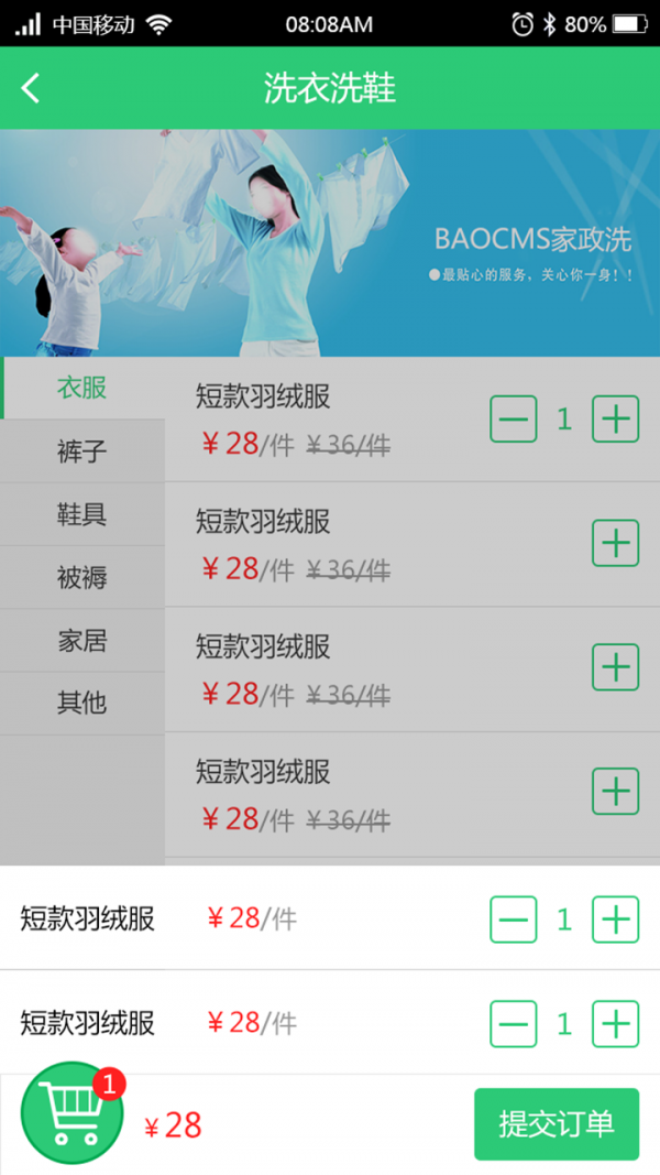 专属家政O2O平台,覆盖家政保洁,上门洗衣,上门维修,宠物等多种特色功能,没有技术门槛,一键安装!包含移动wap+原生app,全程基于微信开发;支持用户在线下单,服务人员在线抢单。