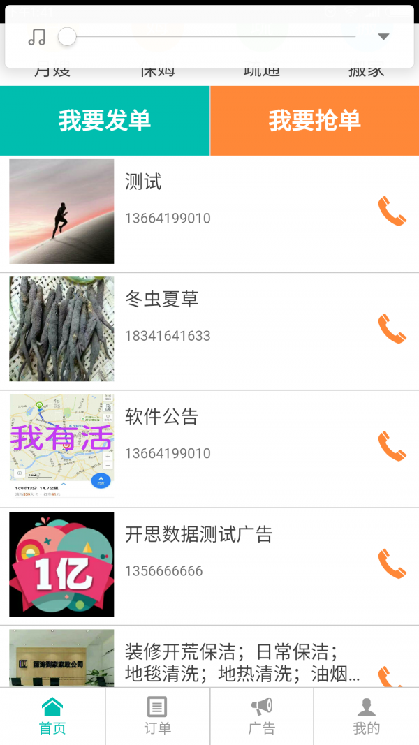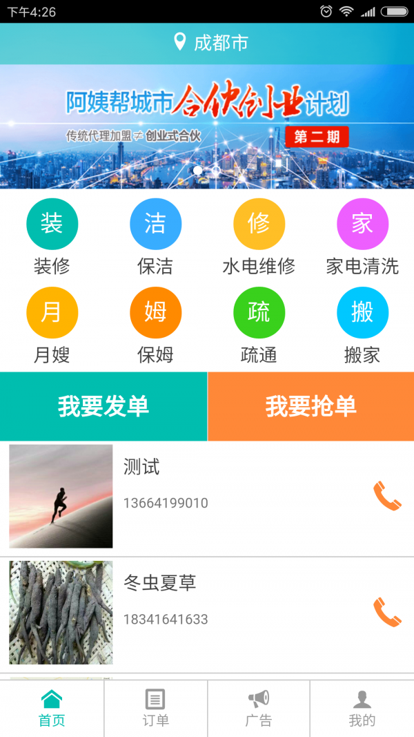 为家政公司和个人提供寻找家政服务人员的平台。服务人员可以来找活,客户可以发单。另兼容维修家教等服务方便大众。还有一些展示自己业务的广告平台。