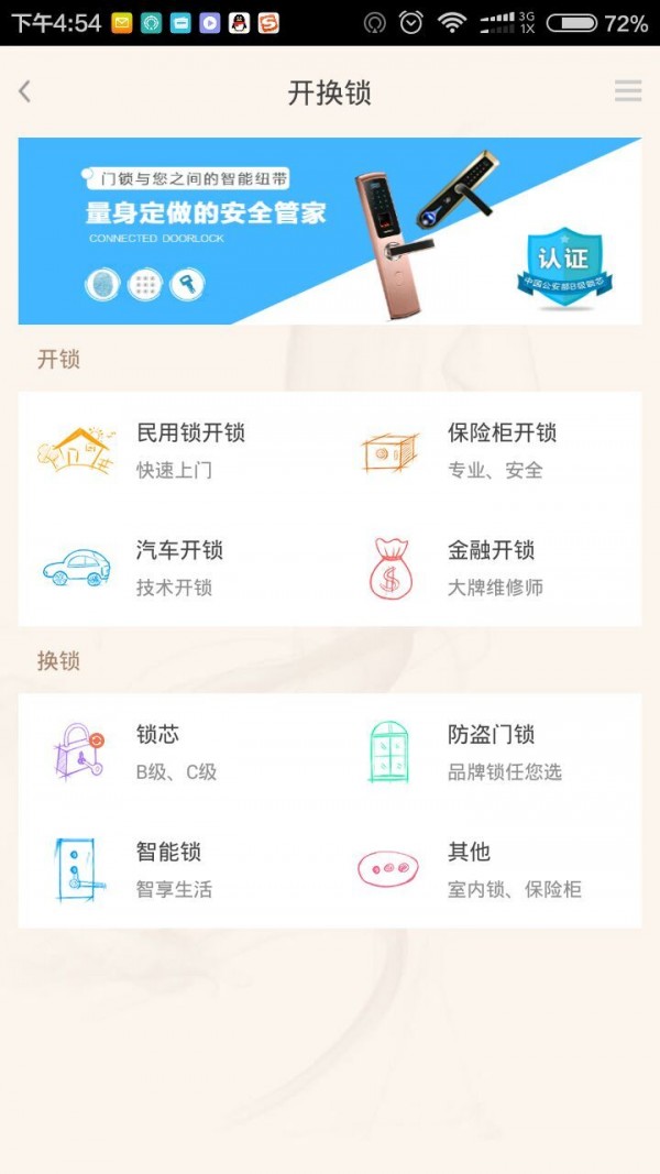 上门了app平台客户端是用于给消费者提供预约到家服务的移动互联网平台。通过客户端可以实现线上预约、支付、评价、线下上门服务等业务流程。主要提供包括:开换锁、维修、家政、丽人四种服务,本次上线首先开通“开换锁”业务,“维修、家政、丽人”业务正在紧张筹备中,敬请期待。