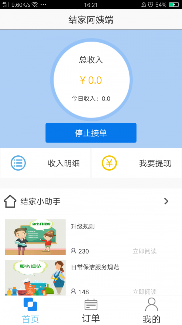 结家阿姨端app是一款家政服务应用,结家阿姨端app专为家政服务人员设计,方便维修服务人员通过软件快速抢单,提升自己工作业绩,快速提升收入。