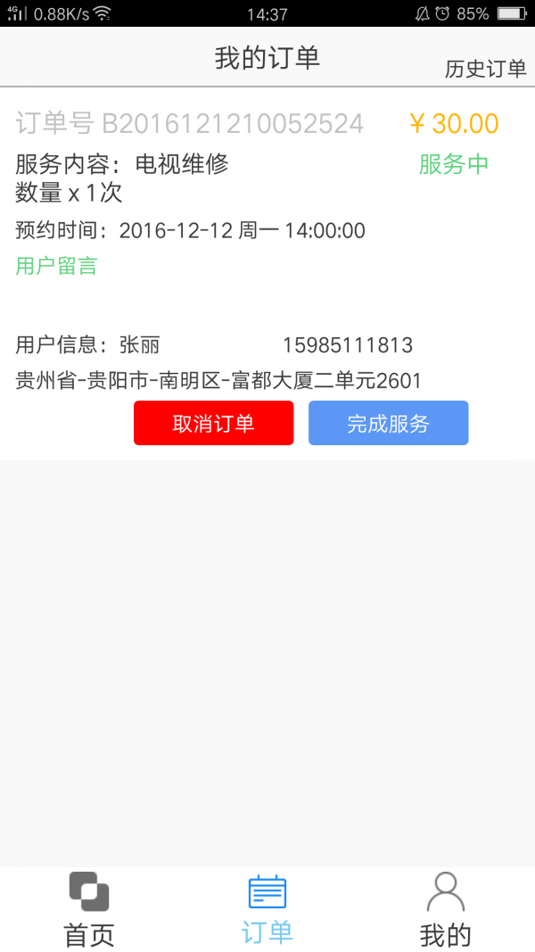 1、订单管理功能服务人员可通过应用快速接到订单并确认服务;
