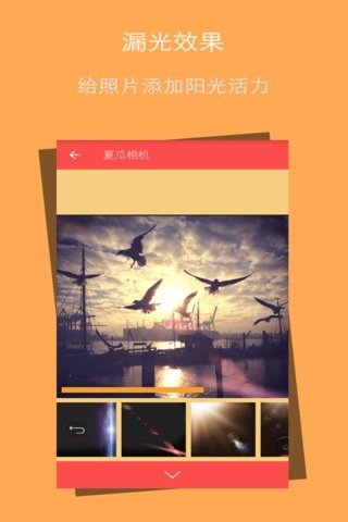夏瓜相机app是一款摄影摄像应用,是个简约的实时滤镜相机,拥有漏光、纹理、滤镜和光照等各种时尚效果,让用户一键轻松拍摄美照。