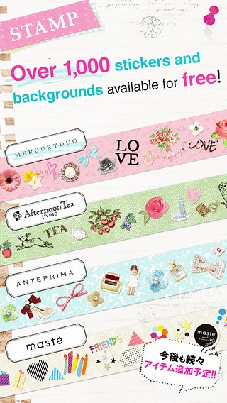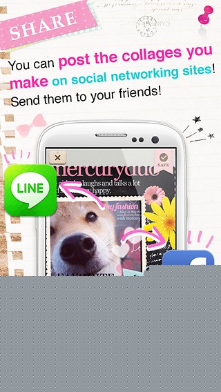 与时尚杂志《nonno》《MORE》《LEE》,品牌“L'OCCITANE”“MERCURYDUO”“MURUA”“deicy”“X-girl”“AfternoonTeaLIVING”“Mark'smast锓Cocoonist”“LagunaMoon”联手合作!可以免费地1,000种以上的标志和背景等的拼贴素材随意编辑!可以打造出时尚杂志、品牌的世界观的非常适合于可爱女生的简单、免费的拼贴App!预计今后还会源源不断地增添时尚杂志及品牌。将拼贴App的便利功能全部搭载上了!通过这样一个App,画像加工将会变得令人愉悦的照片拼贴编辑软件剪裁、照片排版、模板、标志、追加文字(加入文字)、照片加工滤镜、正方形拼贴、网页检索~蜷川实花监制拍照软件“Cameran”的姊妹App。camerancollage操作简单,无论谁都可以制作出1张具有时尚杂志、品牌的世界观的非常出色的照片!可以将女生聚会及生日派对等照的一些照片时尚地拼接成1张,让朋友们多多分享你的回忆照吧!
