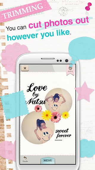 camerancollage:是一款图片相片美化应用,软件充满了浓浓的日系风,本来就是日本开发的嘛。在里面的可以下载许多可爱的贴图,加上文字之后还能为文字变换风格颜色和背景。制作完图片之后有许多发送的客户端刻意选择,非常的人性化!相信很多妹子会喜欢的。