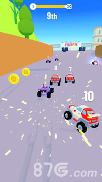 玩家能够收集比赛过程中的硬币,从而进行赛车自定义,购买不同类型的车辆,并涂装,让玩家的赛车,更加炫酷。