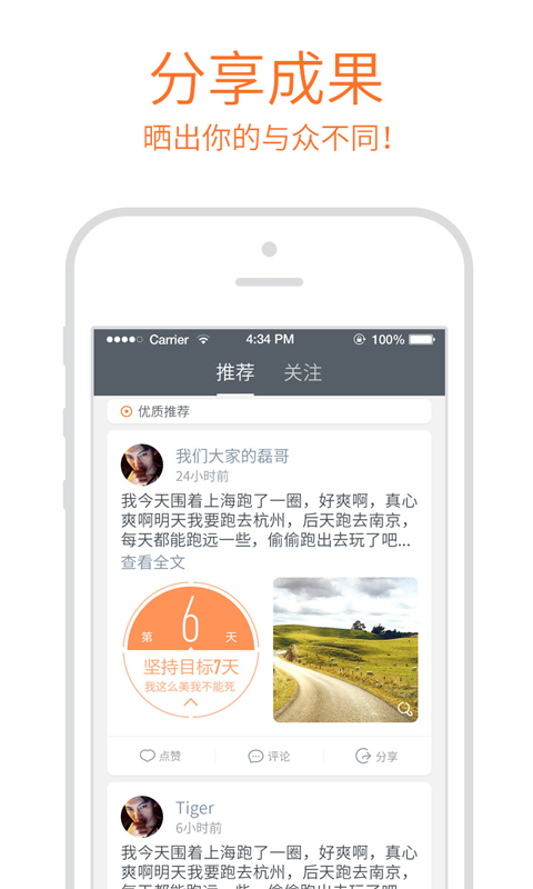 在习惯坚持过程中,可以分享给你的朋友们,让他们一起体验你过程中的辛酸喜乐,共同经历坚持的感受。