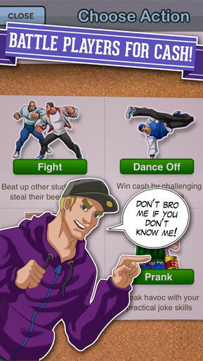 游戏中你进入了大学,你决定把你的宿舍改造得更有趣,你不断拉拢新的室友,在完成任务的同时,也让你的名声不断飙升,最后让你的宿舍不断地去开狂欢的派对吧。