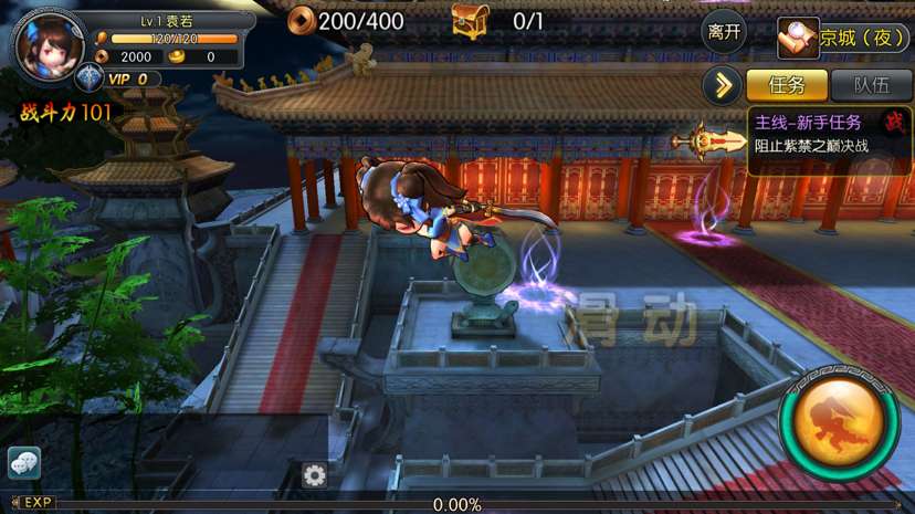 接下来就是进入到新手剧情副本,来体验一下游戏的基本操作了。比较特殊的是,剧情副本中会出现轻功的环节,需要提醒下新入江湖的菜鸟少侠…作为一只老鸟,我有责任告诉大家….第一次接触游戏,这里可是会考验反应的哟!