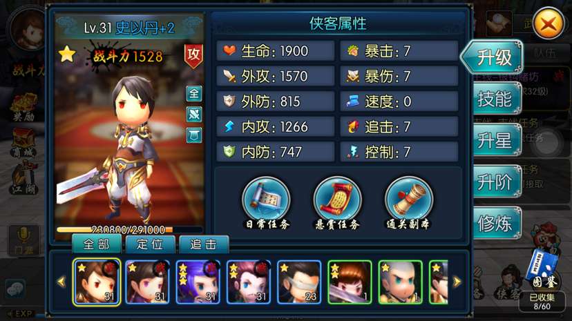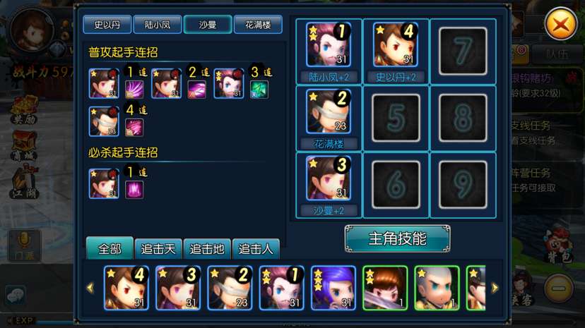 侠客的搭配可谓组合万千,总体来说,大家可以在这个侠客界面中详细查看侠客的属性、作用,通过搭配可以出现不同的连击组合,组合没有千篇一律的标准搭配,玩家可以根据自己的喜好和研究随心搭配。