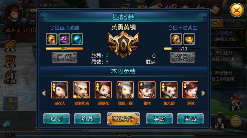 是不是非常熟悉的名称?!没错,因为丰富的侠客组合搭配,大家可以在匹配赛中尽情使用系统免费的侠客,从而了解不同侠客之间的搭配效果,以及实战效果~满满的贴心玩法哟