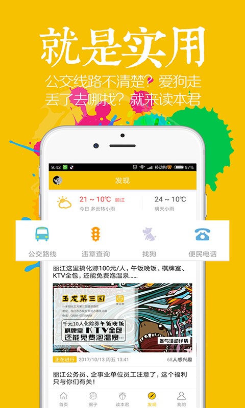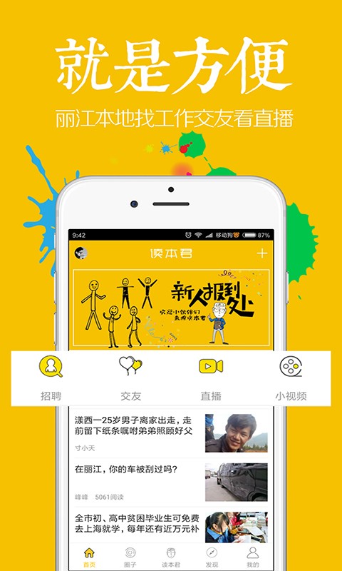 读本君app是一款丽江旅游生活好帮手。读本君app是国内领先移动互联网手机应用。为您提供精选的跟丽江有关的资讯信息,提供最新的新闻资讯、供求信息。