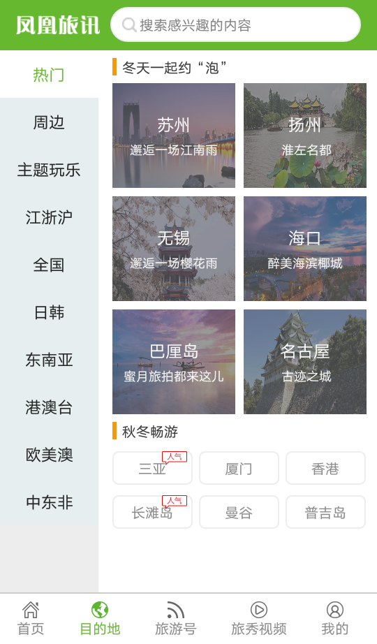 凤凰旅讯app是一款旅游出行应用,凤凰旅讯app为用户提供大量旅游行业信息,让用户可以通过软件了解旅游资讯,查看旅游攻略,体验轻松舒适的旅行生活。
