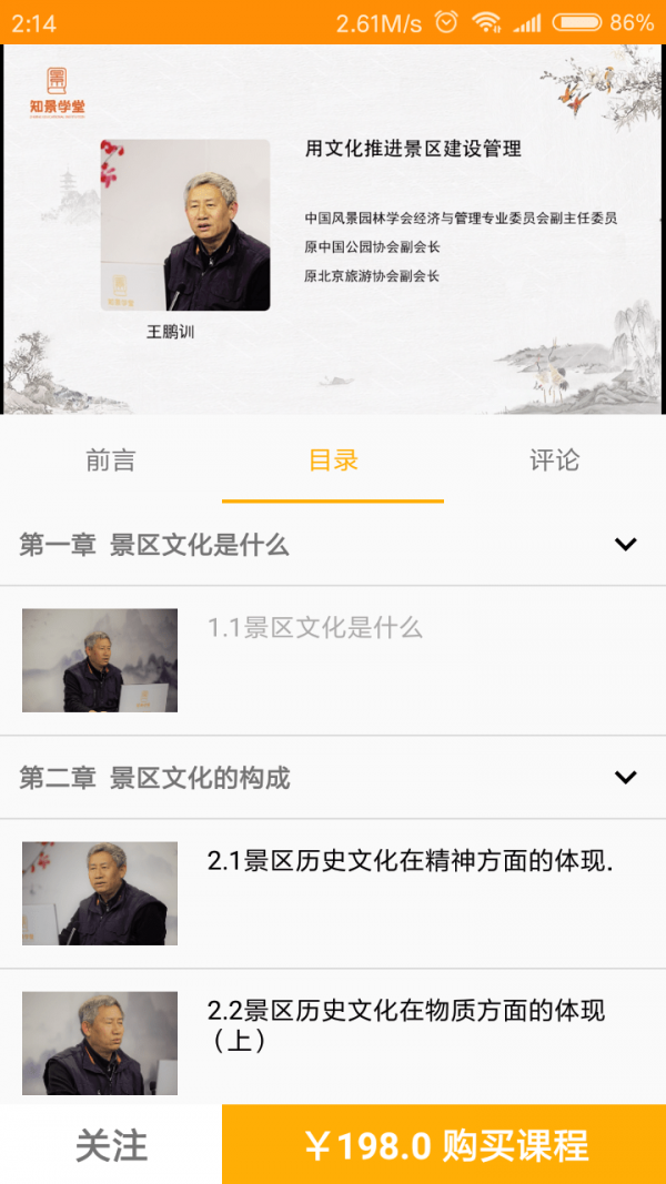 知景学堂app是一款提供专业的旅游景区行业知识的软件平台。知景学堂app标准课程之外的辅助课程,多角度,多维度丰富您的知识结构。