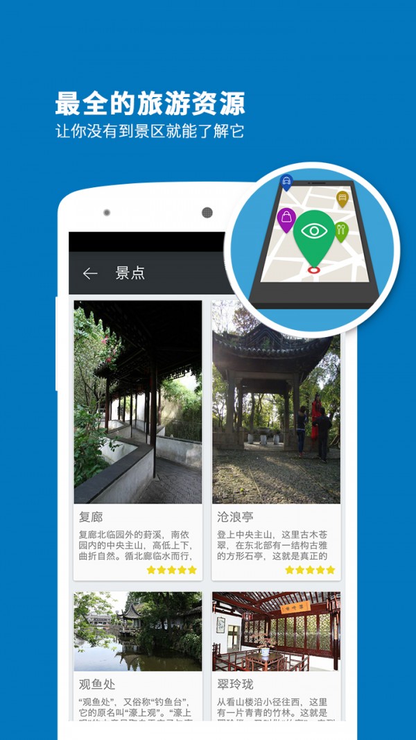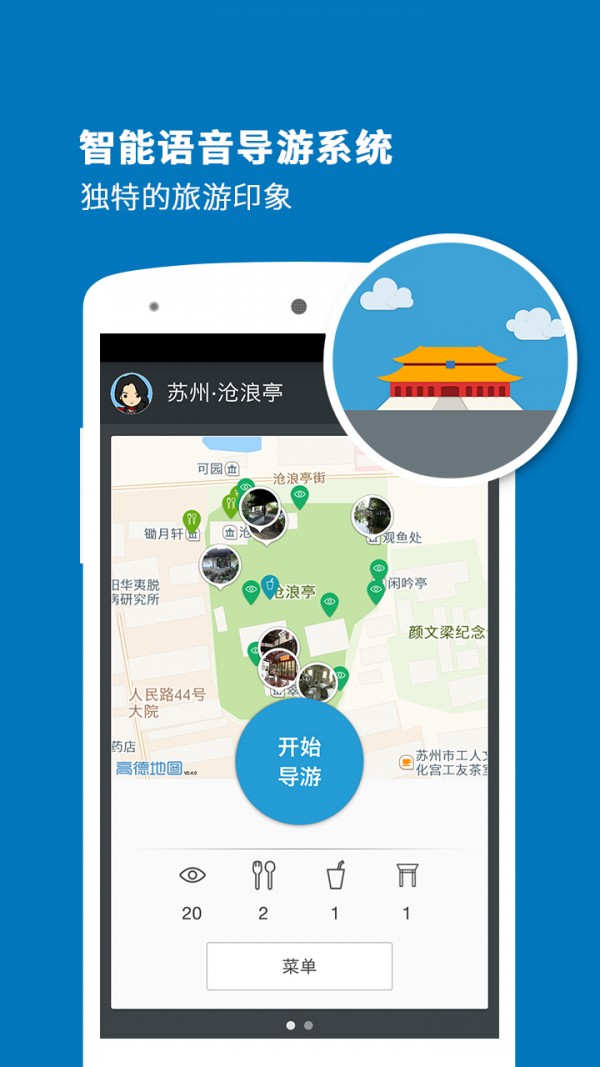 沧浪亭导游app是一款为沧浪亭旅游用户量身定制的旅游出行应用,帮助用户全面了解沧浪亭,享受更多旅游服务,让你的旅途变得更加轻松自在。