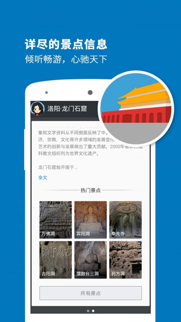 听游天下——龙门石窟导游:专业的智能语音导游系统,专为喜欢自由行的旅行爱好者而设计。携手科大讯飞,带给您独特的