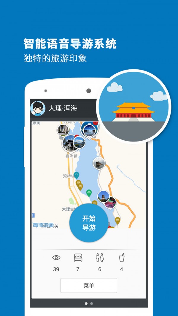 洱海导游app是一款手机导游软件,拥有智能景区导游功能,让您边听边玩,全面了解景区的历史文化和内涵,另外还提供旅游攻略和游记,为用户旅游提供便利。