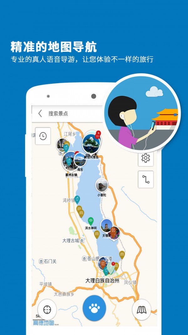 听游天下——洱海导游:专业的智能语音导游系统,专为喜欢自由行的旅行爱好者而设计。携手科大讯飞,带给您独特的洱海印象。