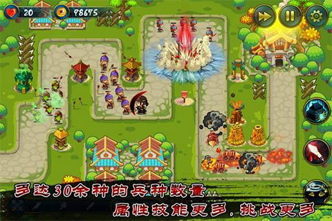 《塔防36计》是一款中国风Q版塔防手游,通过充满中国元素的Q版卡通画面向玩家生动有趣的展现战国时期的历史风貌。 战斗中地图塔位设计更加合理,路径设计更具变化性,您必须充分合理的使用每一个位置,您将真正感受到塔防玩法的精髓。目前开放36计中的16种特殊神计,瞒天过海、围魏救赵、隔岸观火等等,拥有可以改写战局的神技,尽在您的掌握,神一般的存在,说得就是主公您吗?