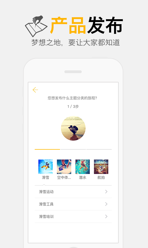 一个出生在射手座风一样的产品诞生了——SOBIGapp,我们称它为地哥,地哥很(强)快(迫)乐(症)的把最好的、最具特色的目的地用一个个板块装起来,有滑雪、跳伞、潜水、游艇等各种项目;