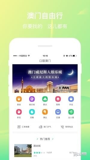 口袋澳门app涵盖澳门所有娱乐城、餐厅、景点、手信店的介绍及地址信息,点击地图即可实时导航。还有大量网友的带图真实点评,好不好玩?好不好吃?大家说了算!