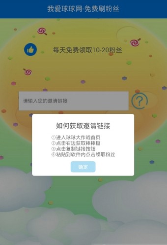 2、然后在获取棒棒糖的栏目最下方,就可以看到你的专属邀请(分享)链接了,点击右侧按钮即可复制出来,有一个玩家帮你点,就可以获得一个棒棒糖,每日最多获得5个,每周最多获得20个;