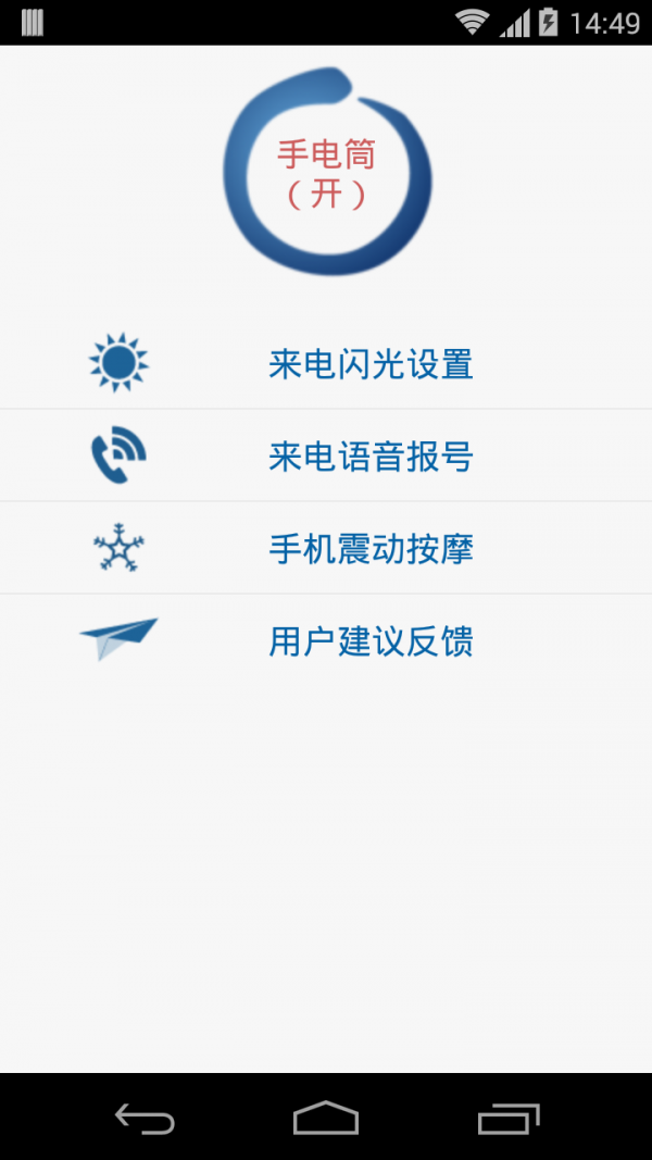 来电助手是一款潮人必备应用具有以下特色小功能1、手机来电闪光、去电闪光、短信闪光、QQ、微信等应用通知栏消息闪光2、手机来电语音播放号码、手电筒、手机震动等功能3、随心设置闪光次数、闪光频率、闪光间隔、闪光开关多种强大功能组合,使用方便与快捷,让你手机酷炫而与众不同,是一款不可多得的好应用。